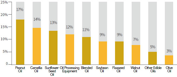 Healthy Oils Olive Oil, Camellia Oil, Linseed oil, Corn germ oil, Peony seed oil, Wheatgerm Oil, Garlic Oil, Coconut Oil, Grape seed Oil, Camellia Oleifera Seed Oil, Indigo Oil, Rice Oil, Perilla Oil, Safflower seed Oil, Seabuckthorn Oil, Pumpkin Oil, Walnut Oil, Almond Oil, Sesame oil, Edible Fish Oil, Acer Truncatum Bunge Oil, Shiny-leaved yellowhorn oil, Canola Oil, etc.